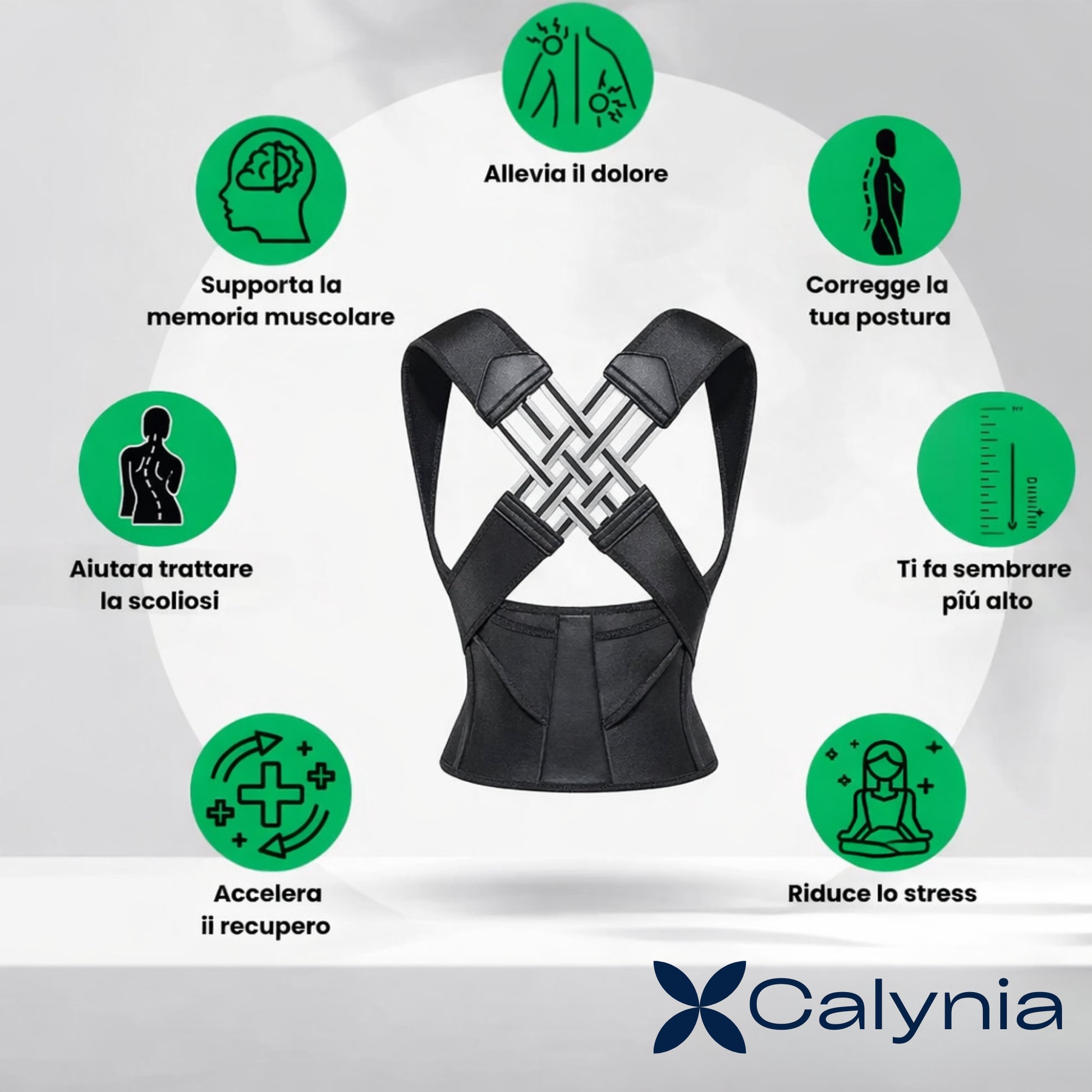 Calynia ti offre un modo semplice e confortevole per sostenere la schiena e migliorare la postura, senza trattamenti costosi, senza lunghi tempi di recupero e senza dolore inutile.